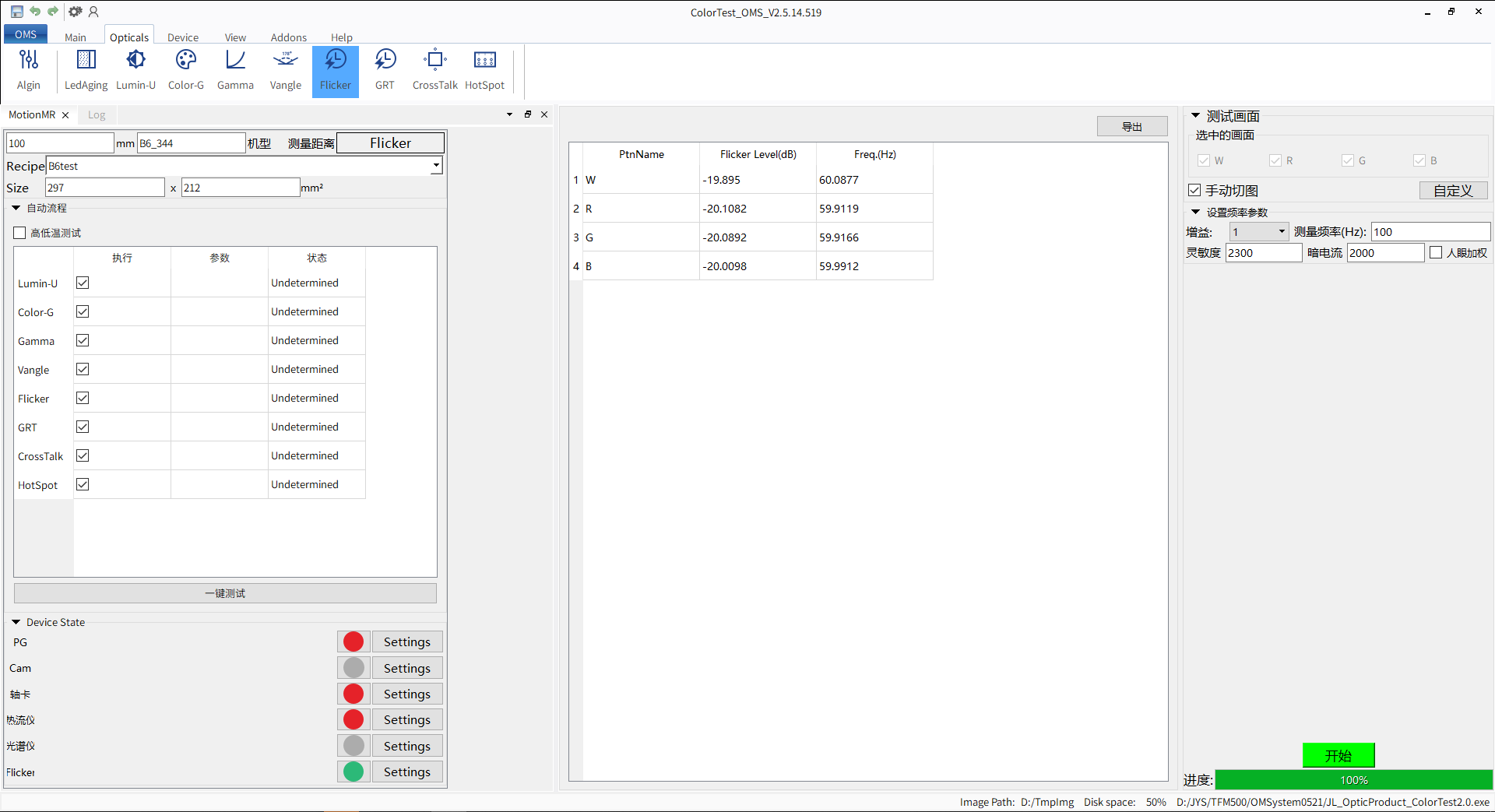 通過採用高靈敏度的 PMT 感測器, 可以實現在極低亮度下(0.001 cd/m2) 的光譜閃爍及回應時間測量。